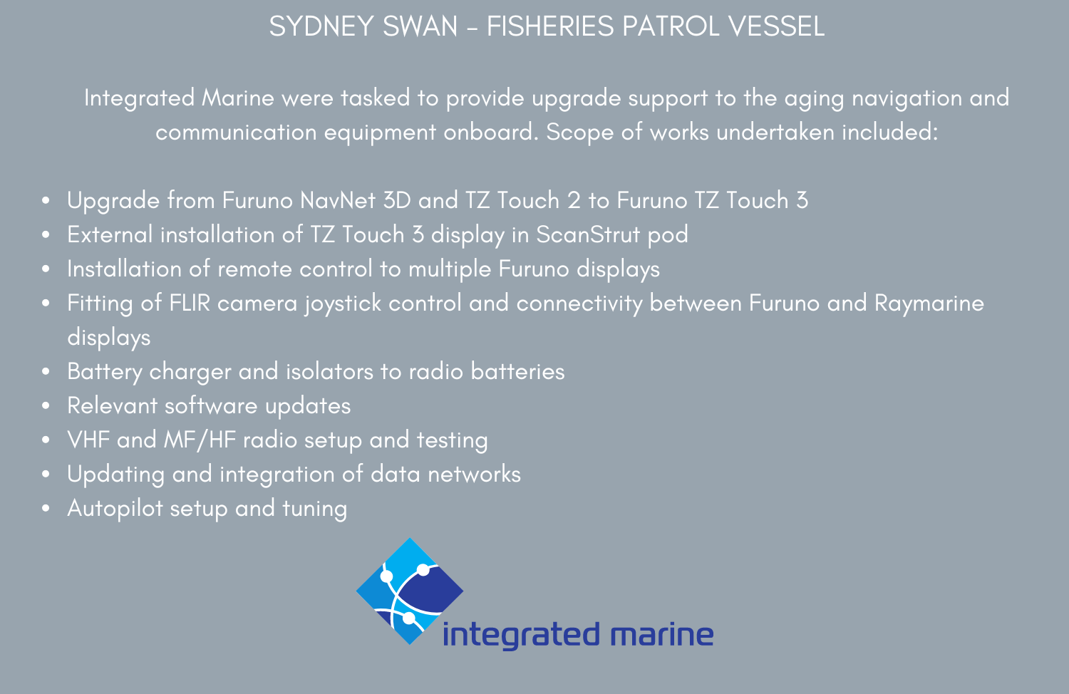 From start to finish, we personally project manage and engineer the installation of both new systems and retrofits. Integrated Marine has specialist experience in the surveying of marine radio and navigation equipment. We also provide system checks and tests for all of your vessel's safety systems.