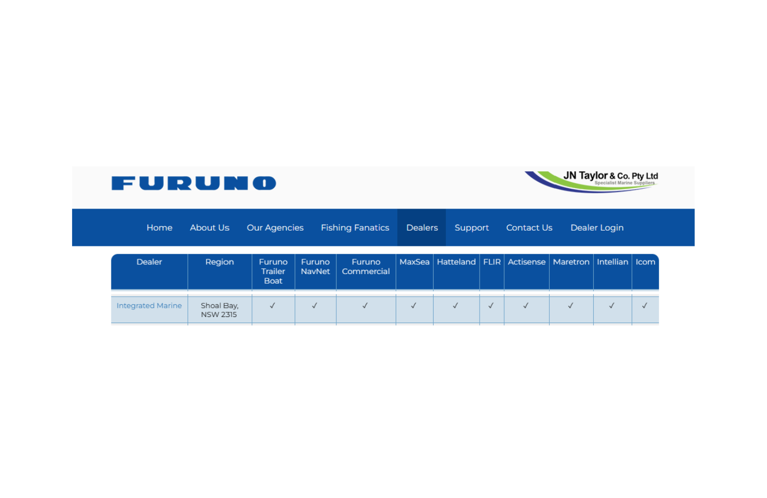 Integrated Marine are an Authorised Service, Installation and Sales Dealer for Furuno Australia and Böning Ship Automation Systems. These dealer agreements provide Integrated Marine with sales, installation and support options; including but not limited to, the product ranges listed below.